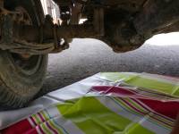 Aber nun zum Tagesanfang. Nachdem ich gefrühstückt hatte, gab es noch Frühstück für den kleinen Samurai. Dadurch konnte ich mir errechnen, das er gestern 11,3Liter auf 100km gebracht hat, ohne Anhänger. Das kommt davon, wenn man es den LKWs heimzahlen will und schneller als sie fahren möchte.