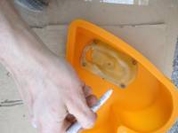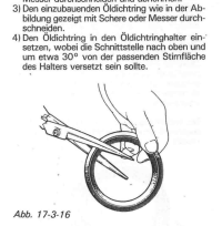 Egal. Ich machte mich daran die Sperre auf zuschrauben und die Membran abzuzeichnen. Danach nur noch ausschneiden und die Löcher rein machen. Fertig war die neue Membran für die Sperre.