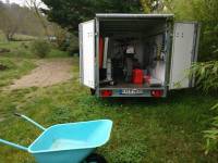 Ich habe erst einmal ausgepackt und alles vom Auto sowie vom Anhänger in die Wohnung gebracht. Da man auf dem eigentliche Grundstück nicht fahren darf und mit den meisten PKWs es nicht könnte gibt es ausreichen Schubkarren um die Gegenstände zu transportieren.