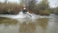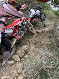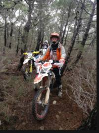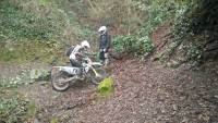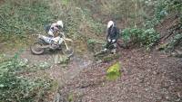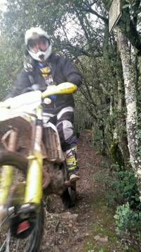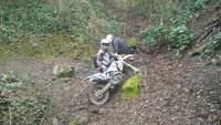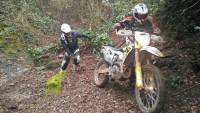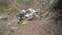 Heute war der erste Fahrtag mit den Freunden und Enduros. Wir hatten stark bewölkter Himmel bei etwa 13°C. Von oben war es trocken. Die Böden war nass.