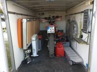 Nachdem ich fertig war, musste ich den Anhänger wieder einpacken. Bedeutet, die Decken einzupacken, Bett hoch klappen und das Motorrad wieder rein zu stellen.: