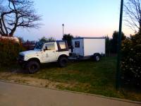 Nachdem ich gegen 15:30Uhr angekommen bin, war noch genügen Zeit um sich einzurichten, beim SJ die Flüssigkeiten zu überprüfen und einkaufen zu gehen. Beim SJ war kein Ölverbrauch festzustellen. Dem Motor geht es aktuell richtig gut. Nach dem auch der TÜV-Prüfer bei der HU ihm sehr gute Abgaswerte atestierte, geht ein großer Dank an Joe Drechsler, der mir den 1,6l-Motor mit schärferer Nockenwelle überholt,zusammen baute, gedichtet und eingestellt hatte. Mit dem Fächerkrümmer, sollte er deutlich über 80 PS haben.(Original ist es ein 1,3l Motor mit 69PS.) Die reale Leistung der Zusammenstellung muss ich irgend wann noch auf einem Leistungsprüfstand messen lassen. Ich bin gespannt auf das Messergebniss und etwas stolz auf meinen kleinen SJ der so schön ab geht. *rot-werde