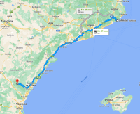 Nachdem ich den Anhänger abgestellt und Mittag gemacht hatte, ging es weiter nach Spanien. in die Ortschaft „Tossa de Mar“. Dieser zweite Teil war nochmal etwa 240km zu fahren. Ohne Anhänger geht der SJ auf einmal ab wie ein Schnitzel. Der Verbrauch ist deutlich geringer, das sehen wir morgen nach dem Tanken. Die Spritpreise in Spanien sind etwas günstiger. Super E5 kostet etwa 1,71€