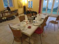 Doch zuerst Frühstück. Am laaangen Tisch. und ganz wichtig, Toaster auf dem Tisch Wir wollen nicht immer die 10m in die Küche rennen.