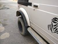 Die Sperre funktioniert wieder. Hatte sich gleich danach getestet. Dem Blech des SJ geht es gut, die Seite sieht noch heil aus. Die Trittbretter haben es abgefangen. Die Sind Verzinkt, da geht kein Lack ab. Das Förderbandgummi als Verbreiterung am Radkasten hat sich weg gebogen.