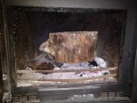 Nun erst einmal die Hausarbeiten gemacht, während die anderen beiden noch schlafen. Der Ofen war komplett runter gebrannt und aus. Der dicke Klotz von gestern war verschwunden. Ich musste etwas ein halben Eimer voll Asche raus schaufeln aus dem Ofen. Der Gitterrost war komplett zu, sodass dort keine Luft mehr durch kam. Dass musste ich natürlich auch wieder frei machen.