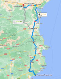 Wie angekündigt, ging es heute etwa 240km nach Montlaur. Zur nächsten Unterkunft Landgut Fraissinède von Laurence und Alain Bruet.