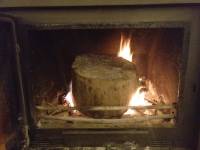 Und nachdem dass gut 20min. brannte, gleich den nächsten Brocken drauf. Der Ofen frisst das richtig gut.