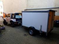 Der Anhänger hat bewusst keine festen großen Einbauten, weil ich ihn weiterhin als Transportanhänger nutzen will. Alles bis auf dem die Stromgeschichten ist Modular und kann ich raus nehmen.
