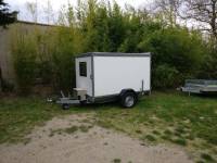 Der Anhänger ist ein 1,3Tonner Kofferanhänger von Brenderup. In etwa das hier.