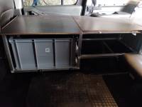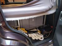 Versorgt wird die Kühlbox über einen extra Akku 12v 100Ah. Dieser ist hinter dem Fahrersitz montiert. Rechts unten im Bild zu sehen.