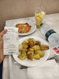 Das Restaurant war auf Selbstbedienung ausgelegt. Ich nahm mir ein Stück Lasagne, eine Portion Kartoffeln, ein Wasser und eine Portion Ananas. Das alles kostete 24€. Nicht gerade wenig.