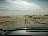 Die Ausfahrt vom Chott, war eine plattgefahrene Salz/Sand Piste.