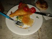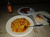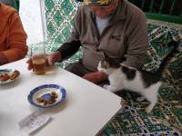 Damit fällt der Abschied nicht schwer. Auf dem Campingplatz, setzten wir uns in das Restaurant, für Getränke und Brik (mit Katze).