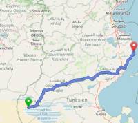 Wir, der Rest, fahren die Strecke in zwei Etappen. Zuerst in die Nähe von Sfax und am Samstag nach Nabeul. (Am Sonntag Morgen dann zum Hafen in Tunis.)