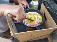 Der heutige Morgen beginnt mit Eier und Speck für Marcel und mich.
