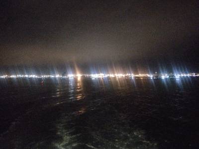 Wir trafen uns am Heck, an Deck des Schiffes. Von dort aus, hat man auch eine gute Aussicht. Zum Abschied, die Lichter von Tunis.