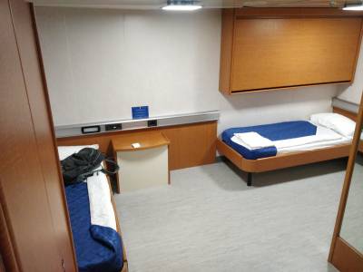Am Board ist es eher langweilig, es gibt gerade nicht viel zu berichten. Gut, ich könnte sagen ich habe schlecht geschlafen. Die Matratze ist durchgelegen. Es wurde ungemütlich, ich konnte irgend wann um 4Uhr nicht mehr liegen. Naja, ich überlebenden es
